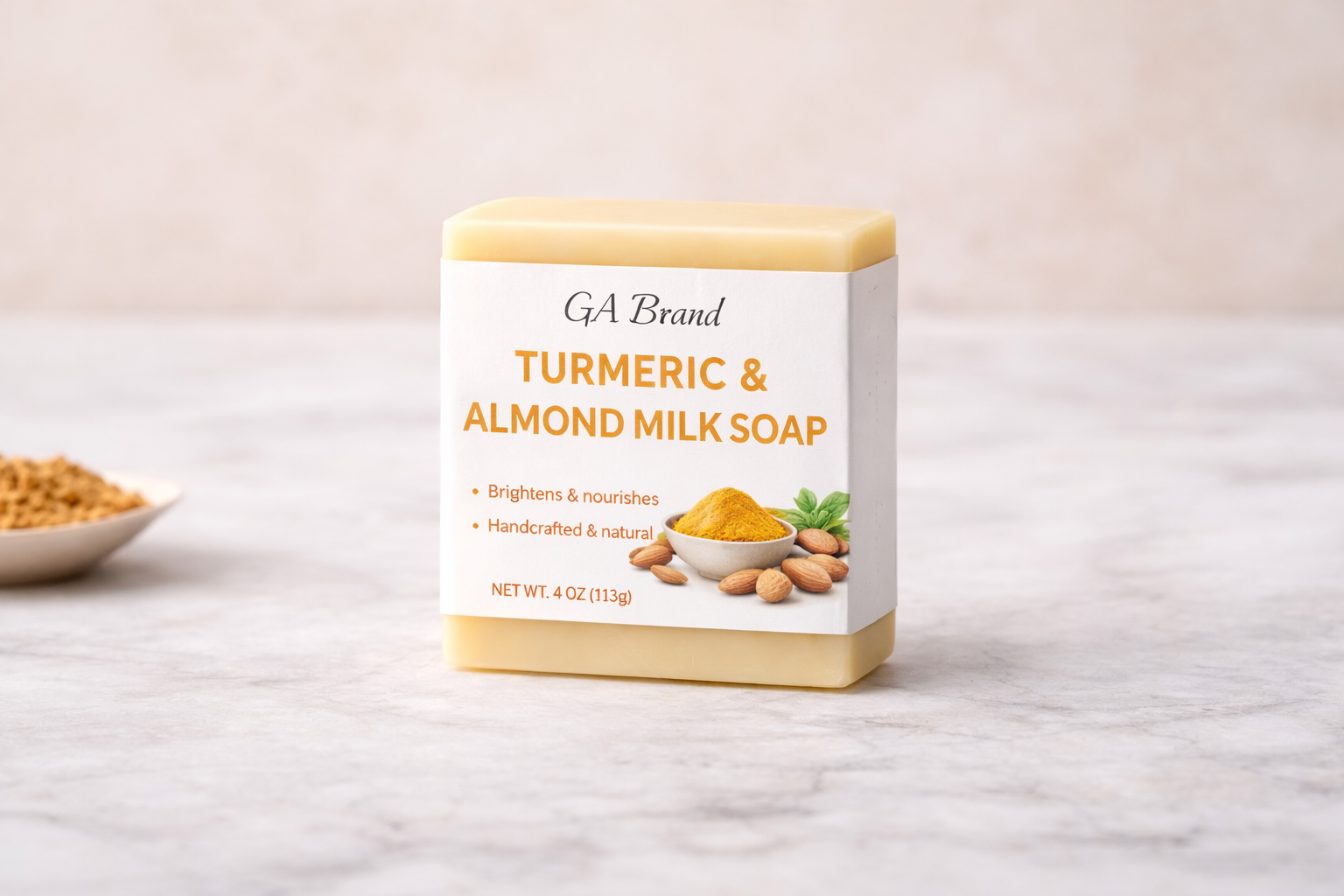 GA Brand Turmeric & Almond Milk Soap is a natural soap designed to deeply cleanse and nourish the skin. It combines the powerful benefits of turmeric and almond milk to help reduce dark spots, acne, and uneven skin tone while leaving the skin smooth, radiant, and healthy-looking.